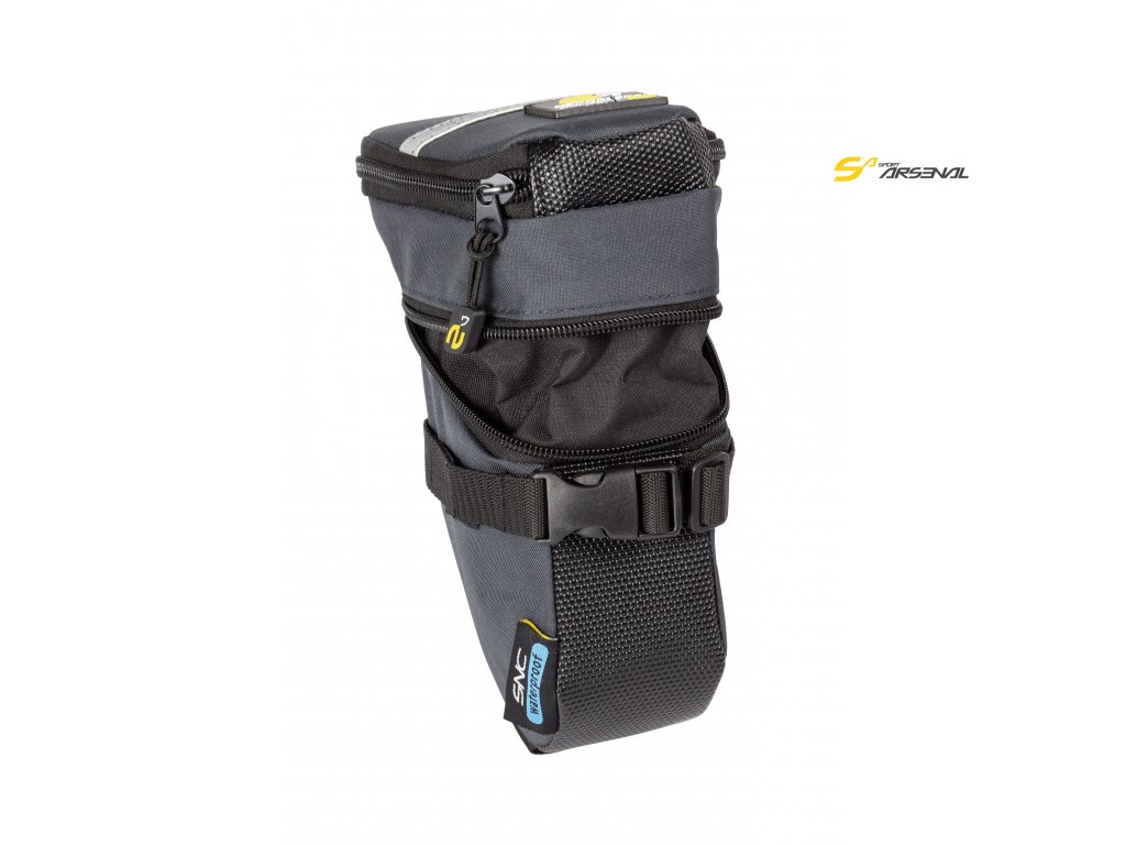 Úzká podsedlová brašna sportovního designu, která v žádném případě neomezí pohyb vašich nohou. Pod sedlo a k sedlové trubce brašnu připevníte popruhem s přezkou a suchým zipem. Velmi praktickým prvkem je možnost zvětšení objemu brašny rozepnutím středového zipu. Brašna je ideálním doplňkem na vaše kolo, jestliže provozujete krátkodobé vyjížďky, kdy musíte mít stále u sebe nářadí, náhradní duši, malou svačinu, peníze atp.