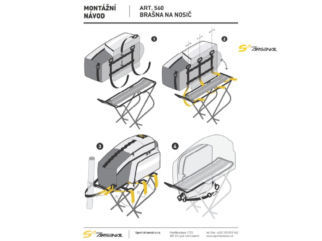 - popruhový připevňovací systém pro uchycení dalšího nákladu na víku brašny