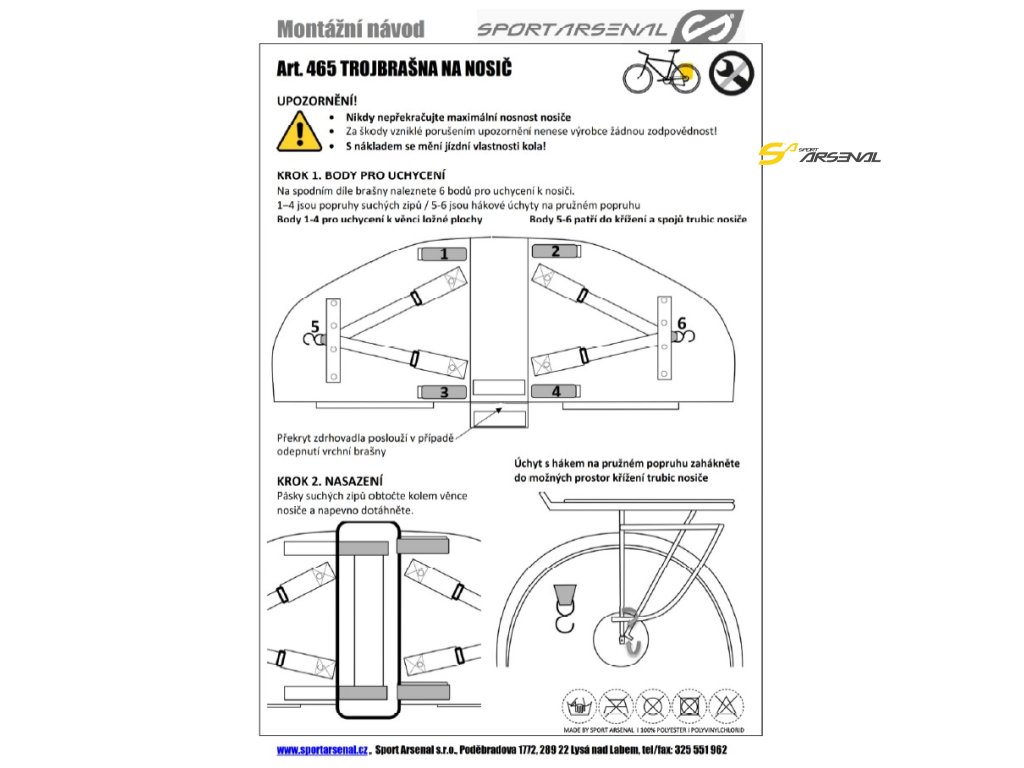 Brašna je vhodná pro všechny typy zadních nosičů Sport Arsenal.