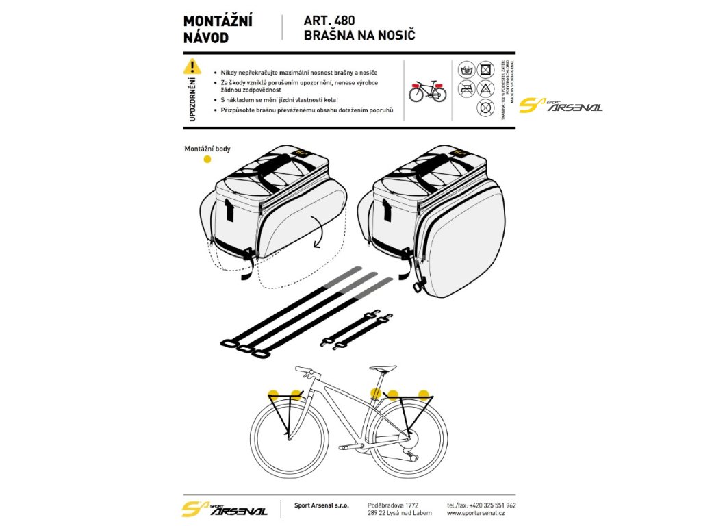 - žlutý návlek proti znečištění s reflexním prvkem = návlek ochrání brašnu v případě vlhka, mlhy, mrholení - POZOR ne v případě deště, návlek není pláštěnka
