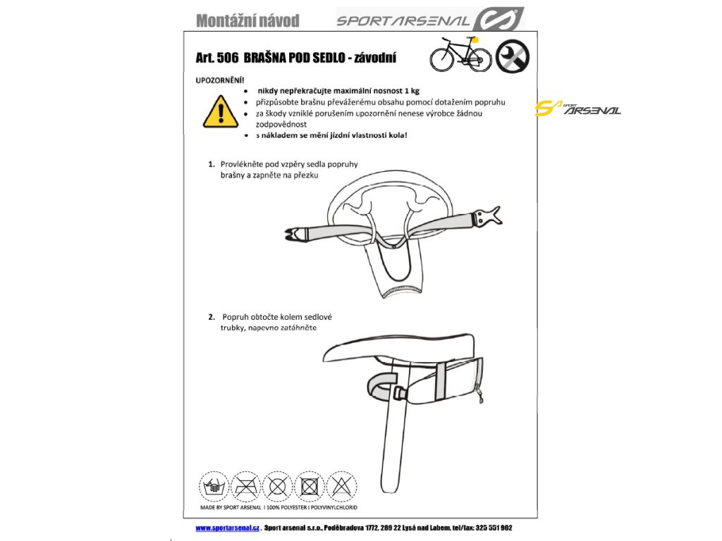 Brašna pod sedlo s minimalistickým designem je nenápadná a pojme to nejdůležitější co je na cestách potřeba. Klíče, peníze, lepící sadu na duši, anebo nářadí na opravu kola. Brašna se připevňuje pod sedlo popruhem a na sedlovou tyč páskem se suchým zipem. Úzký profil brašny v žádném případě neomezí pohyb vašich nohou při šlapání. Na silničku, anebo jiný typ kola, je tato brašna ideálním doplňkem.