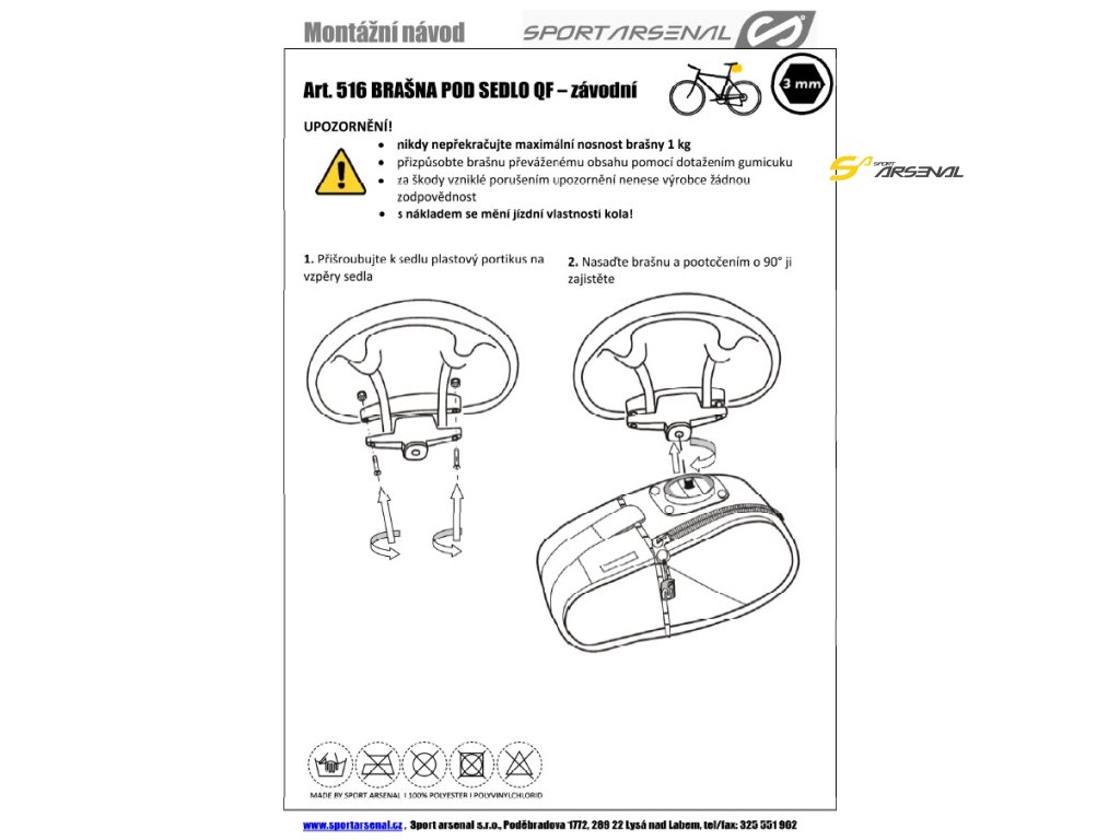 Eliptická brašna pod sedlo s minimalistickým designem je nenápadná a pojme to nejdůležitější co je na cestách potřeba. Klíče, peníze, lepící sadu na duši, anebo nářadí na opravu kola. Brašna se připevňuje pomocí držáku Quick Fix, tento systém zaručí jednoduché odpojení brašny z držáku. Úzký profil brašny v žádném případě neomezí pohyb vašich nohou při šlapání. Na silničku, anebo jiný typ kola, je tato brašna ideálním doplňkem.