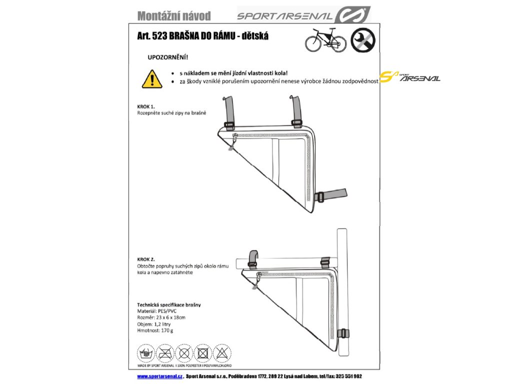 Nejmenší rámová brašna od Sport Arsenalu. Ideální pro dětské rámy.