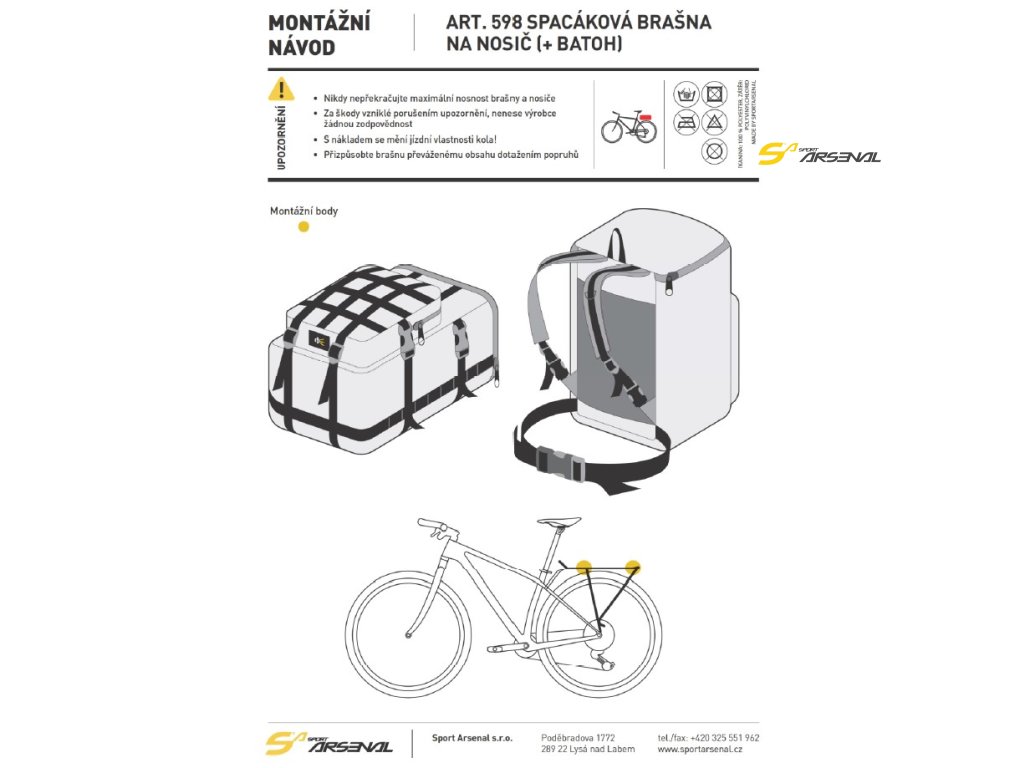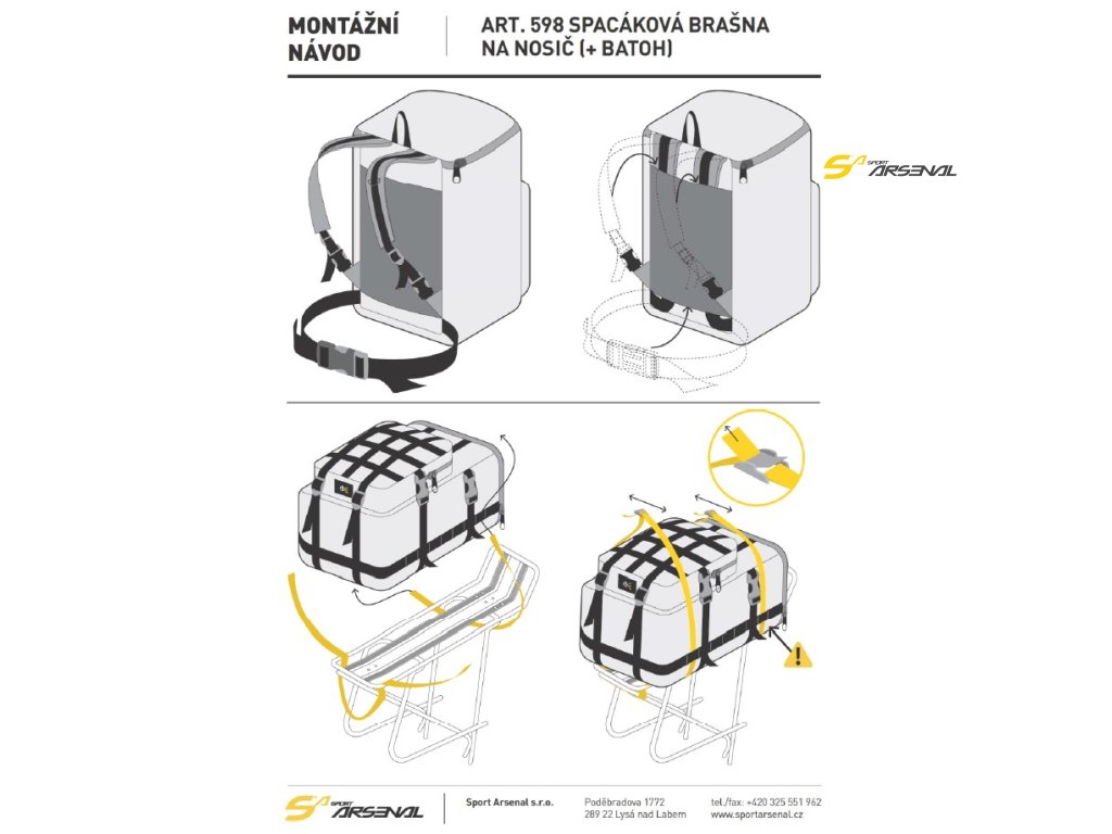 - uchycení brašny k nosiči dvěma komresními popruhy art. 031, které jsou součástí balení brašny