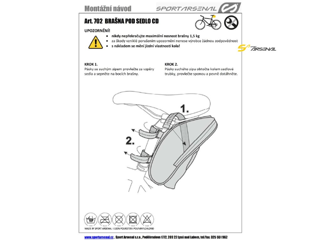 Brašna pod sedlo s kapsou pro cyklistickou lahev z moderního materiálu CarbonDesign pojme to nejdůležitější co je na cestách potřeba. Klíče, peníze, sadu lepení, anebo nářadí na opravu kola. Brašna se připevňuje pod sedlo popruhy se suchým zipem. Úzký profil brašny neomezí pohyb vašich nohou při šlapání. Tato brašna je ideálním doplňkem na všechny typy kol.