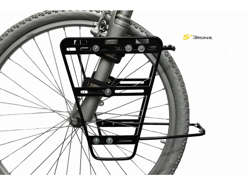 Přední nosič z řady expediční a náročné cykloturistiky je určený zejména pro několikadenní až několikatýdenní cesty. Nosič můžete využít i v případě, že máte diskovou brzdu. Přední nosič je vhodný zejména k lepšímu rozložení nákladu na celém kole, tzn. odlehčení zadní části kola a posunutím těžiště více do středu. Bezpečnostní popruh, který dokonale zajistí brašnu brašnu a zaručí jízdu bez rozkmitání. Výborná odolnost proti korozi! Nízká hmotnost nosiče při zachování vysoké nosnosti a tuhosti. To vše dělá z tohoto předního nosiče naprostou špičku.