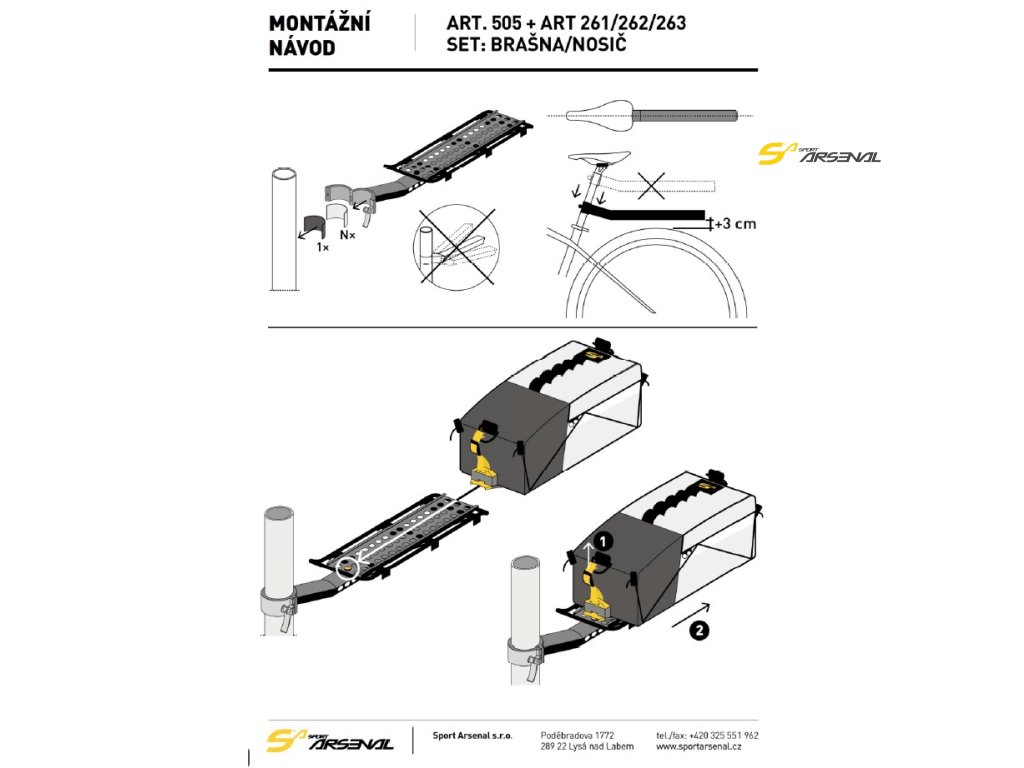 Akční set brašny art.505 a nosiče pod sedlo art.263 na kola menších rámů ve velikosti XS a S pro převoz lehčích nákladů. Originálním QuickFix systémem přináší rychlé a spolehlivé uchycení brašny k nosiči.