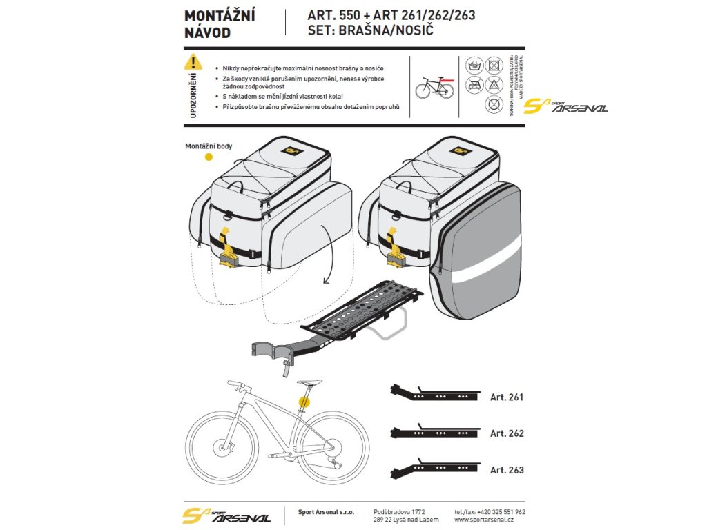 Akční set brašny art.550 a nosiče pod sedlo art.262 na kola standardních rámů ve velikosti S a M pro převoz lehčích nákladů. Originálním QuickFix systémem přináší rychlé a spolehlivé uchycení brašny k nosiči.