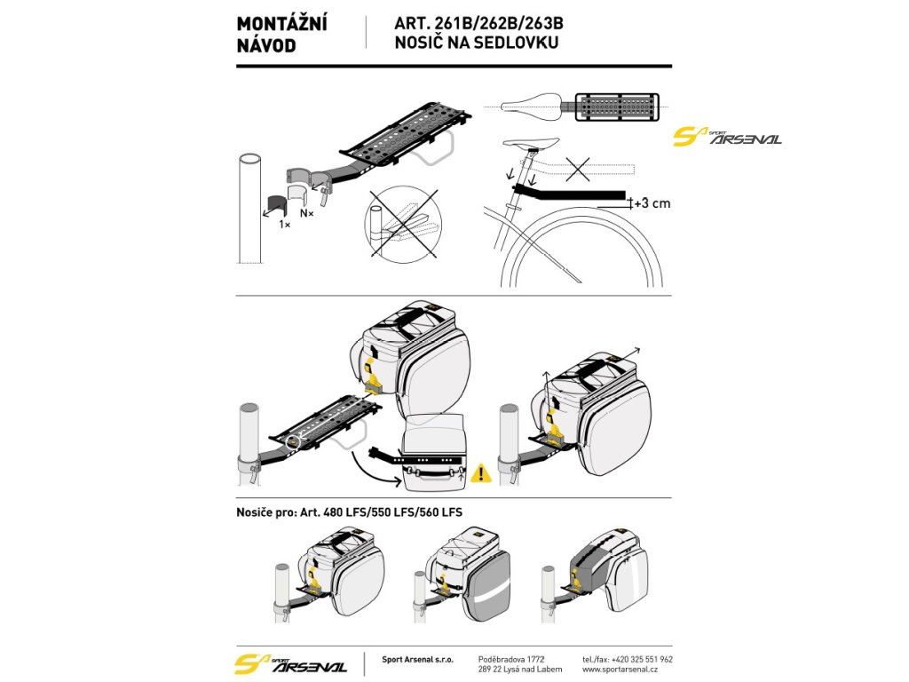 Nosič je kompatibilní s QuickFix systémem brašen Art.480 LFS, Art.550 LFS a Art.560 LFS přináší jednoduché, rychlé a spolehlivé uchycení brašny k nosiči.