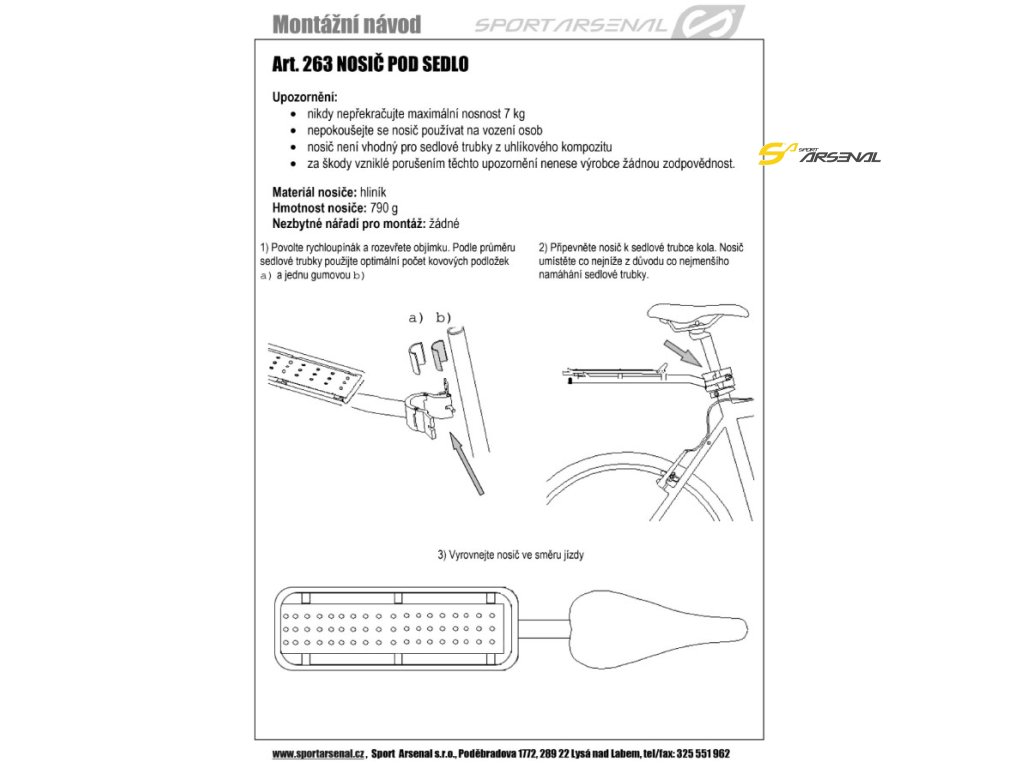 - nosič je vhodný zejména pro brašnu Art.505 a 450, dále pak Art.550 a 560 (pouze bez rozevření bočních kapes), nebo pro přepravu spacáku, stanu a jiného nákladu připevněného pomocí elastického popruhu