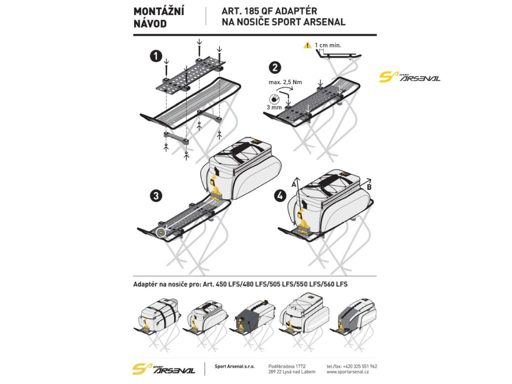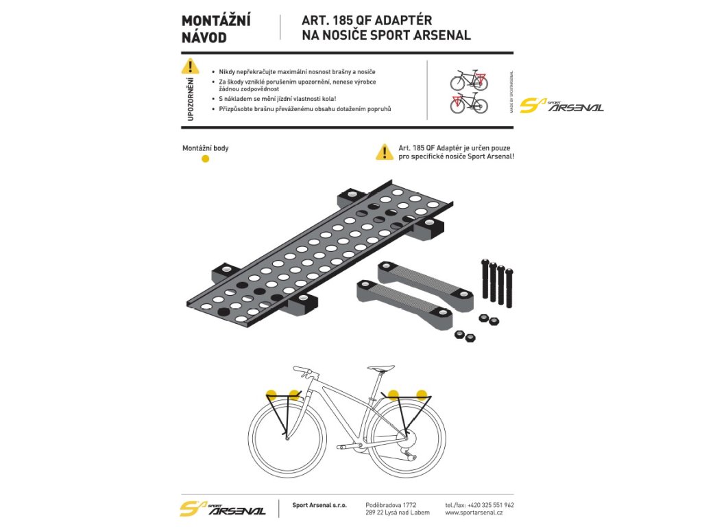 - adapter není vhodný na podsedlové nosiče Sport Arsenal a přední nosič art.204
